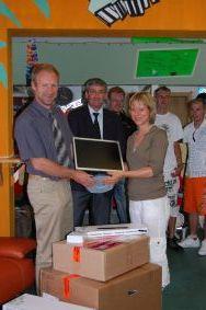 Zwei PCs und einen Laptop hat heute der Jugendklub Saftladen spendiert bekommen. Peter Kissing, Leiter des Regionalbereichs Oberhavelland der E.ON edis AG, überreichte im Beisein von Bürgermeister Heiko Müller Katrin Beyer die Geräte. Die Leiterin des Saftladens freute sich: "Es geht voran. Mit den Geräten können wir Kinder und Jugendliche an den Computer heranführen."